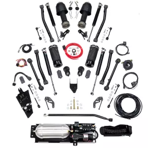 - Description: Sold by AccuAir, the 3.5-inch Dynamic Lift Kit designed to fit Jeep Wrangler Unlimited (JL four-door version) equipped with V6/Turbo engines. AccuAir’s Dynamic 3.5-inch lift kit provides a top-of-the-line performance suspension upgrade. Raise and lower your Jeep on demand to meet your needs. This lift kit easily clears 37-inch tires on 4.5-inch back-spaced wheels. System is controlled via touchpad controller or Bluetooth-enabled ePlus app which allows for lowering and raising vehicle. System allows for maximum tow rating and allows for automatic load leveling. Kit allows for addition of winch bumper, tire carrier, or rooftop tent as it automatically compensates for anything added to the vehicle including side steps. The underbody mounted three-gallon air tank and compressor provide onboard air for quickly and efficiently inflating tires, water toys, camping furniture and more. Kit defaults to the standard 3.5-inch height when traveling 25 MPH or faster. When traveling under 25 MPH, vehicle can be raised by two inches or lowered by one inch. Individual corners can also be raised or lowered for handling the trail or leveling for camping.