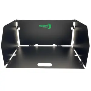 - Description: Sold by Tailgater Tire Table, BBQ camping wind screen protection is convenient for windy outdoor cooking. Made of aluminum (1.0 mil thickness), the wind screen is lightweight, powdercoated, portable, durable, folds flat, and is easy to maintain. The spring-loaded latches keep the windscreen open while in use. When folded flat, the latches keep the panels closed. Besides the side and rear panels, the bottom panel allows for even more wind protection and helps to keep your stove or BBQ level when it is on an unlevel surface. It has exceptional strength, is rugged and corrosion-resistant. The nylon cordura bag included has handles for ease of carrying and protection. This wind screen is 24 1/2 inches wide, 18 inches high and 12 inches deep and weighs 6 pounds, 5 ounces.