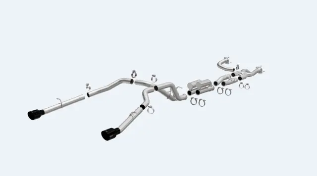 - Description: Sold by Magnaflow, the MagnaFlow SPEQ Series Cat-Back Performance Exhaust System brings out the personality of your truck, backed by our signature resonant, powerful exhaust tone and dyno-proven performance. 3” diameter mandrel-bent tubing passes through a No Drone Technology (NDT) chamber before exiting in a dual rear-exit configuration, equipped with 5” black chrome tips. This exhaust kit is the perfect equalizer between sound and performance. Upgrade your truck to the next level with an exhaust that has the pipes to put other trucks to shame. This system delivers a balanced exhaust note during normal driving, and unleashes its full tone under acceleration. This SPEQ Series exhaust replaces your stock system, bolting on directly behind the catalytic converter assemblies.